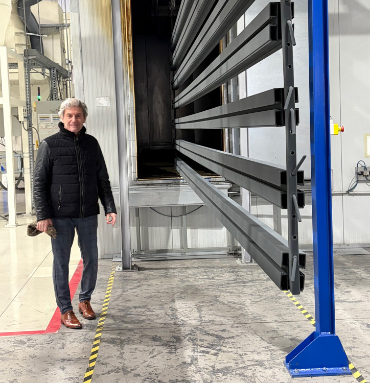Róbert Kovács, à côté du four de thermolaquage des structures aluminium des abris (certifiées QUALICOAT). Un procédé qui dure 40 minutes.