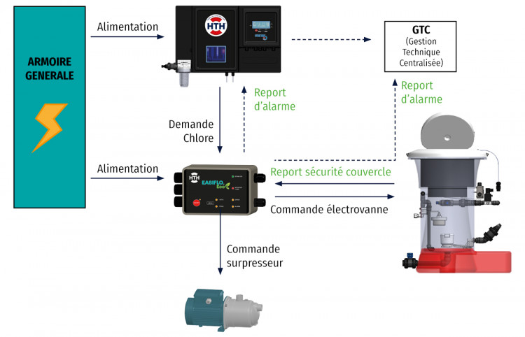 Schéma de fonctionnement du module HTHTM EASIFLOTM Eco pour piscines collectives