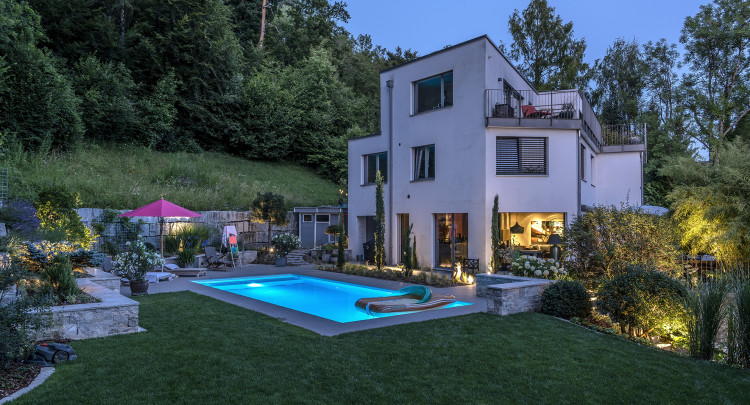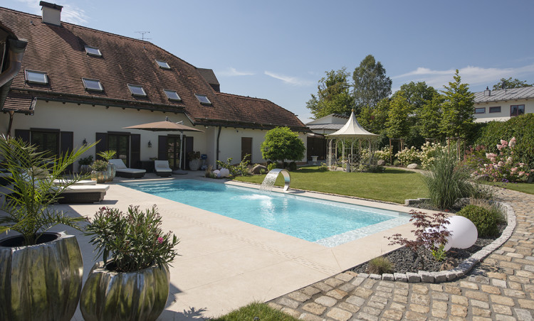 ,,New Work" macht mobiles Arbeiten möglich - und wer mehr Zeit zu Hause verbringt, der steckt Geld in die eigenen vier Wände. Dabei wird ,,ein Stück Grün" immer wichtiger. Der Wunsch nach Natur ist spürbar - auch zu Hause. Und Outdoor-Living wird angesichts des insgesamt wärmer werden Wetters beliebter. Wird der Garten intensiv genutzt, braucht es auch draußen eine einladende Atmosphäre. Anstatt Haus, Garten und Pool als einzelne Einheiten zu betrachten, verschmelzen sie zu einem Gesamtkonzept, das man auf den Nenner ,,Leben am Wasser" bringen kann. Hier will man nicht nur schwimmen. Hier will man Kraft tanken, die Natur genießen und sich mit Freunden treffen. Der Garten wird zur grünen Oase mit Wasserangebot. Und weil man ganzheitlich denkt, rundet man den Außenbereich mit der passenden Bepflanzung, mit Outdoor-Möbeln und Designelementen ab. Auch Küchen für draußen oder Grillstationen können dazugehören. So entsteht ein kleines Paradies, in dem man vom Alltag abschalten kann.
