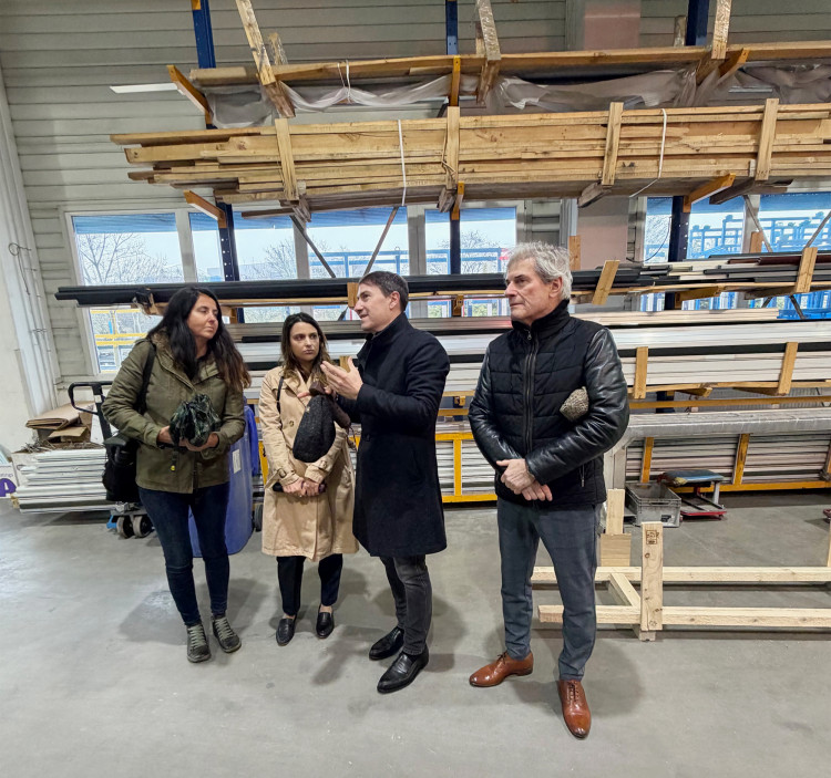 Katerina Vasak, Ghada Ben Abdallah, Lorand Barkassy-Grünfeld et Róbert Kovács, lors de la visite du site industriel.