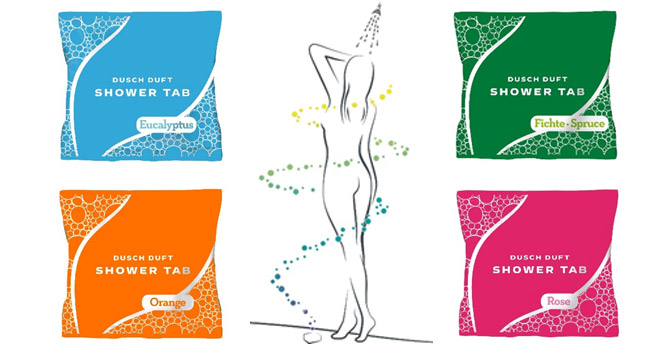 Die Duschtabs werden hierbei einfach in den Wasserfluss am Duschboden gelegt und setzen beim Duschen ihren intensiven Duft aus ätherischen Ölen frei.