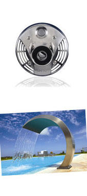 Tato sprcha oblých tvarů s širokým hrdlem dokonale napodobuje vodopád tím, že vytváří silnou a jednolitou vodní záclonu až k hladině bazénu, pomocí nastavitelného průtoku až 700 l/min., a zajišťuje tak stimulační, masážní a relaxační efekt.